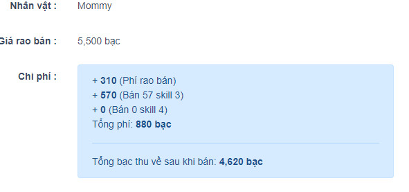 AE ai bán nhân vật chính rồi cho hỏi chút cách tính phí của Fan với ạ Em có bán mà web tính phí 1 kiểu trong bank trừ 1 kiểu không hiểu kiểu j luôn :V Lúc bán em có đặt nhầm giá lên chỉnh lại không biết có liên quan gì không ạ