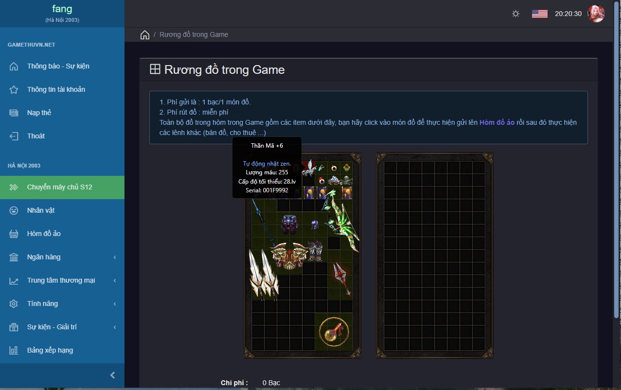 1. E co huỷ bảo hiểm con tm để chuyển sang acc khác cày, nhưng huỷ xong ko giao dịch đc, cất vào hòm để để chuyển lên hòm ảo mua bh nhưng cũng ko chuyển đc luôn, mong add fix cho những acc cùng số điện thoại đc giao dịch với nhau ạ. s15.jpg