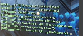 Tôi tạm thời cấp quyền block chat cho 10 chủ Guild có tên dưới đây Game chủ guild AnhEmNEW Tequila chủ guild LegendMU PHUCYEN88 chủ guild VINHPHUC Avatar chủ guild WhatLove Scent chủ guild Avengers KyChu chủ guild KhungBo KyNiemAE chủ guild AnhEmTao NaTra chủ guild HALONG TomMiss chủ guild ChienHuu vodoi chủ guild vodoi ChienThan , AndreyTran chủ guild ThacLoan 1. Cách khoá chat: ae đăng nhập vào game, gõ /chatblock tennhanvat so_phut ví dụ muốn khoá chat nhân vật admin trong 60 phút, gõ /chatblock admin 60 2. Quy định: chửi nhau trong game là chuyện bình thường, Game không phải là họp chi bộ đảng nên không cần nghiêm túc. Tuy nhiên việc lôi bố mẹ, vợ con gia đình vào là không được Yêu cầu anh em được cấp quyền, chỉ khoá nhân vật khi + Có câu nói xúc phạm đến gia đình hoặc spam liên tục trên kênh thế giới từ 10 câu trở lên + Các câu chửi thề không tính là xúc phạm gia đình ( bố mẹ, kiểu ***, bố mày, mẹ mày ...) >> AE có thể gửi cho admin để cho vào bộ lọc từ + Mỗi lần khoá, vui lòng chụp hình, có hiển thị thời gian và gửi zalo cho admin để làm bằng chứng + Anh em sử dụng công cụ để trả thù riêng, sẽ bị thu hồi quyền ! 3. Anh em không thích nghe chửi, có thể chủ động cho tên nhân vật vào danh sách chặn riêng của mình: Các ví dụ đáng khoá ngay lập tức