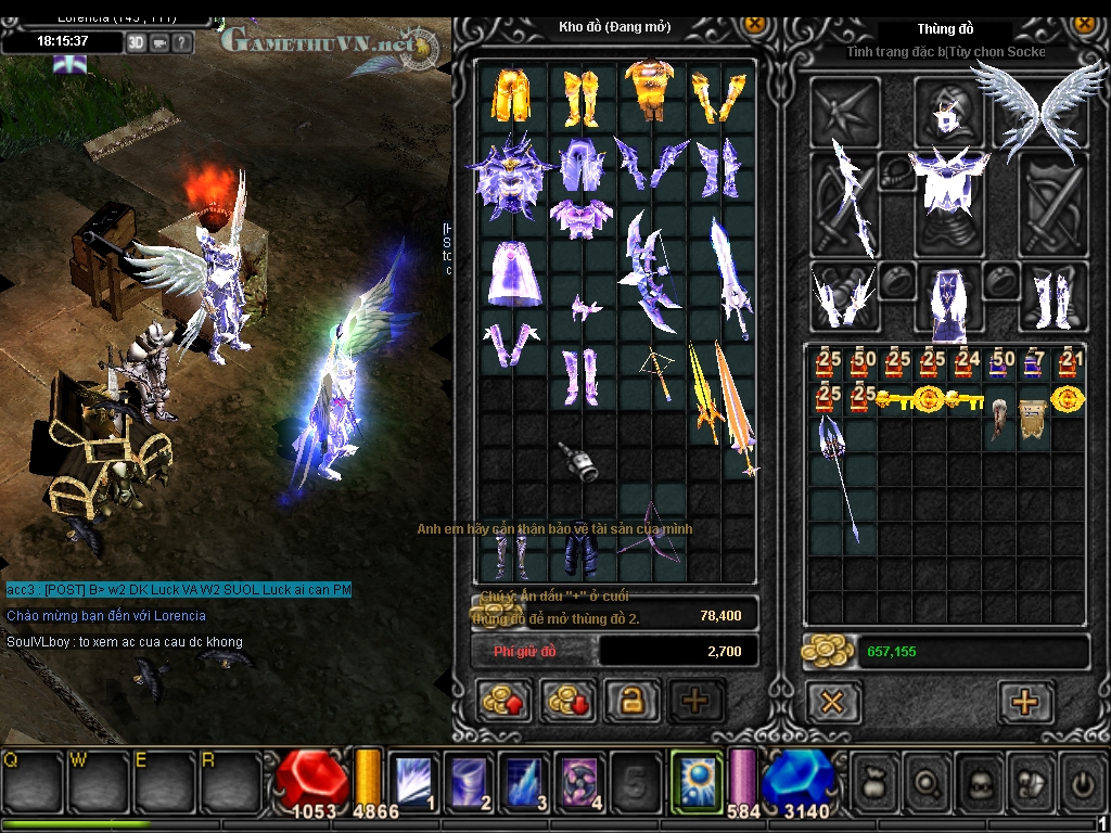 * đồ theo acc hiện tại có 2 loại cơ bản. - đồ nhóm 3: đồ đem theo từ 1.0 sang nhưng không mở khoá bằng phúc duyên. đồ này vẫn sử dụng bình thường trong acc nhưng vào mục bảo hiểm đồ trên qlac sẽ không hiển thị (nghĩa là, nếu bạn nhỡ tay phi shop thì mất hẳn) - đồ nhóm 4: đồ được admin tìm lại sau khi bị lừa, bị hack,... Đồ này vẫn sử dụng bình thường, bị cấm giao dịch và có tên trong danh sách đồ bảo hiểm trên qlac (nếu nhỡ tay phi shop thì lấy lại đồ bảo hiểm là đc) * hiện nay mục nâng cấp đồ phúc duyên đã ko còn nữa, mà nếu có còn thì bạn cũng ko thể đưa đồ n3 lên hòm đồ ảo để mà nâng cấp đc.