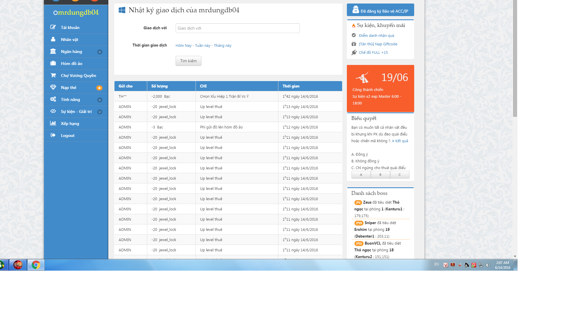 1. Hôm nay em chuyển bạc cho acc thaika 2000 bạc