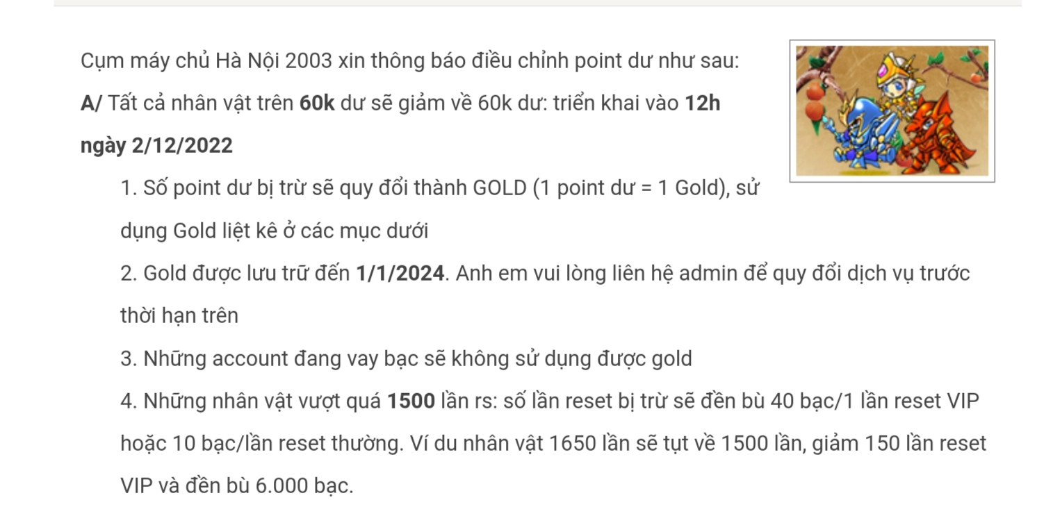 Thông báo Dự kiến điều chỉnh point dư (chốt lần 1)