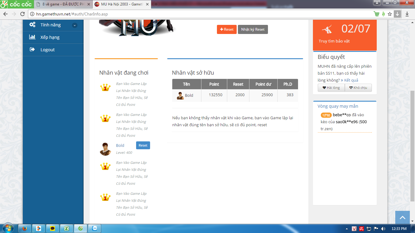 4. Cơ hội chuyển nhân vật sang account mới: _ Được chuyển duy nhất nhân vật sang account mới (nhiệm vụ 3, lần reset, point dư, Master skill, point VC, Phúc Duyên). Lưu ý là bạn tự chuyển đồ đạc sang account bằng cách giao dịch thông thường, và tất nhiên đồ vĩnh viễn KHÔNG được phép chuyển sang acc mới. _ Yêu cầu: Account mới KHÔNG có nhân vật nào reset trên 100 lần hoặc có trên 2k point dư. _ Account mới phải cùng số đăng ký với account cũ _ Account cũ KHÔNG nằm trong diện bảo lãnh hoặc chống đổi số điện thoại có mục này có phải yêu ko giờ đổi tên acc cũng ko dùng đc mà