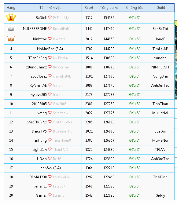 thế thì thằng TOP 17 lại lên vù vù. Cơ mà để ý thì thấy, thằng TOP 17 bán Gaion, và Skill đi (vì nó hay tăng Phép) Có thể nó làm MG chiến chăng