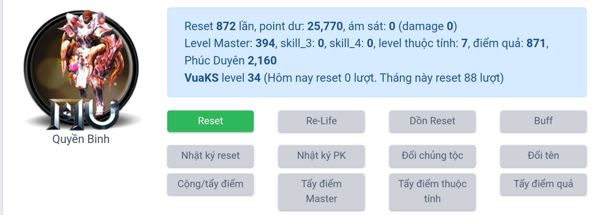 Móc Linh hồn yếu và tâm đánh thấp,ko chơi nhé RF thủ yếu rồi,bản ss15 này RF đánh vô ảnh quyền Đam to và xa hơn( điểu yếu skin hay lag) 160k poin xem đồ sao để cộng vừa công thủ đc. Str 10k Agi 20k Vit max Ene max Vô ảnh quyền đam siêu to