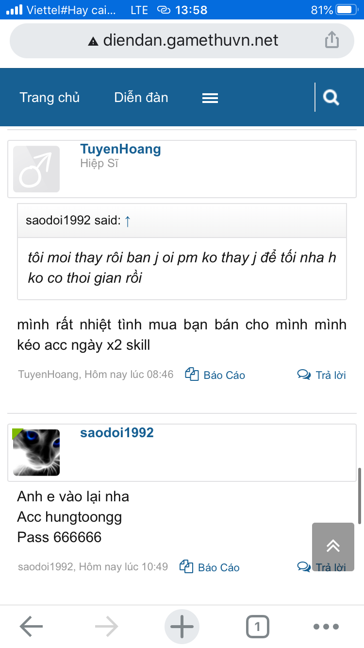 11. Chuẩn nó là thành phần lừa đảo trí trố ae nó hỏi mua acc bảo cho xem xong vào phá acc mình hẹn nọ kia dạng trẻ trâu ấy mà