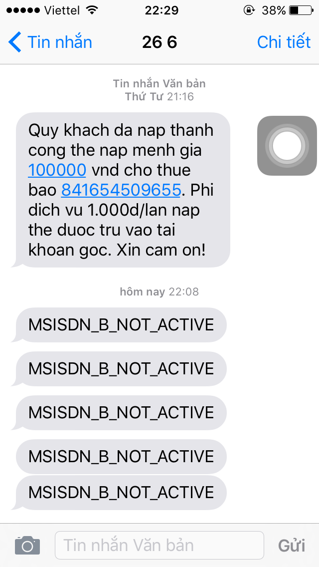 Thắc mắc Ko thể nạp đc thẻ cho thuê bao khác