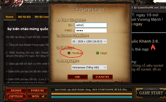 11. Bạn cứ tải bản full xuống, sau đấy vào option tắt hết về 0, rồi khi bật main lên tịch vào Medium thì nó chả khác gì bản rút gọn. Chơi bản full bạn có nhiều ưu thế hơn bản rút gọn.