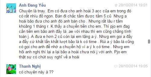 4. a nghị post cmt của 2 bên là quá rõ rồi đây là hành vi chiếm đoạt tài sản đây mà bjo a trả lại acc đồ bị phong thần cho bên bị hại để bạn ấy thanh lý đi lấy tiền chứ chờ thằng tèo hay teo gì kia thì có mà đến mùa quýt năm ấy nó ms trả