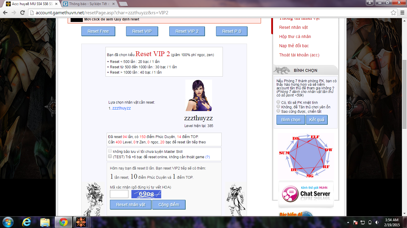 reset Vip mới được bạn nhé. tớ 1 acc rs free cũng vẫn bị 10lv. Chúc toàn thể anh em MU vạn sự nhự ý , Mã đáo thành công