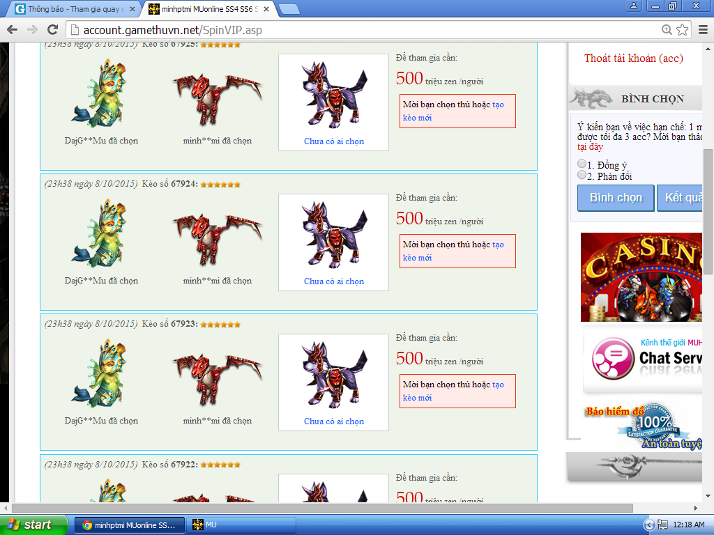 9. tôi chủ acc minh**mi cần solo quay may mắn cả đêm vs 2 chủ acc ở dưới hình :)