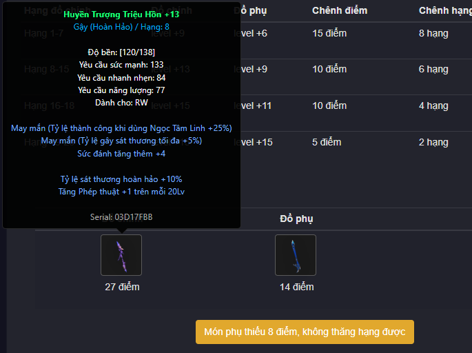 trò hên xui bác ạ, + đến 9 thì k nói, nhưng + 10 + 11 mình bỏ bùa may mắn , còn bùa cấp độ thì +12 +13, mình quay xen kẽ vé devil, khi nào xịt 2 cái thì quay , bữa quay như vậy lên thẳng lun