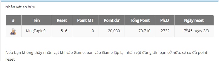 Thắc mắc Tổng point trong game và trên web khác nhau?