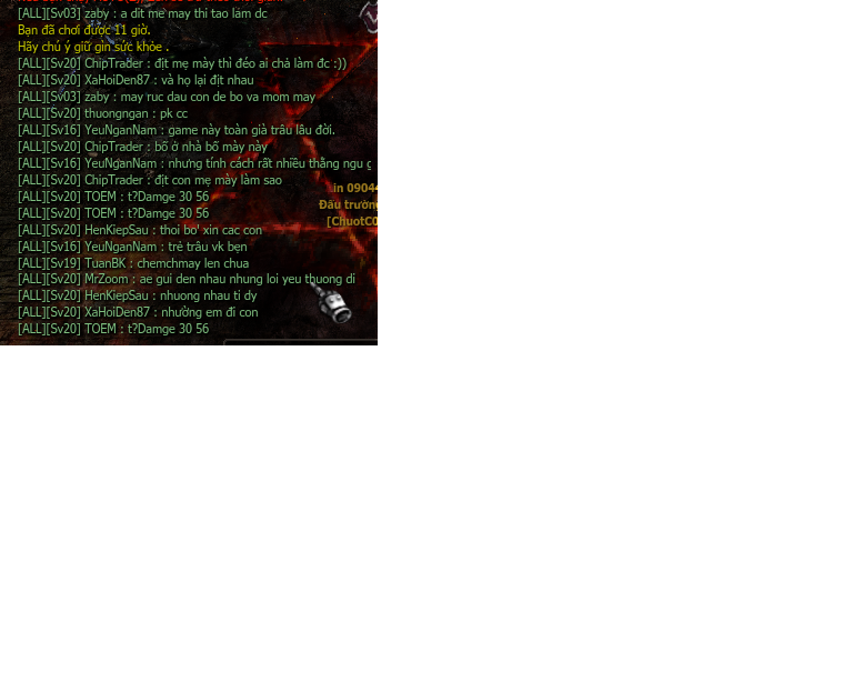 tố cáo char QB : MiNiKi chửi bậy trong game , thách đấu đánh giết nhau trên kênh all gây ảnh hưởng đến mọi người