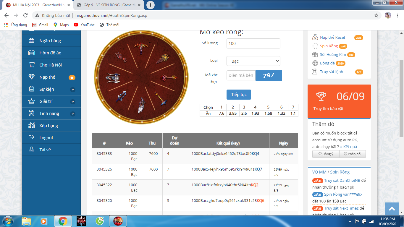 9. cái spin này đánh vào lòng tham của con người. đâu tiên quay mấy cái kiếm 500 1k dễ ae tưởng dễ ăn bắt đầu quay. rồi thua hết bán đồ bán acc té. vì có còn gì nữa đâu mà trả té ^_^