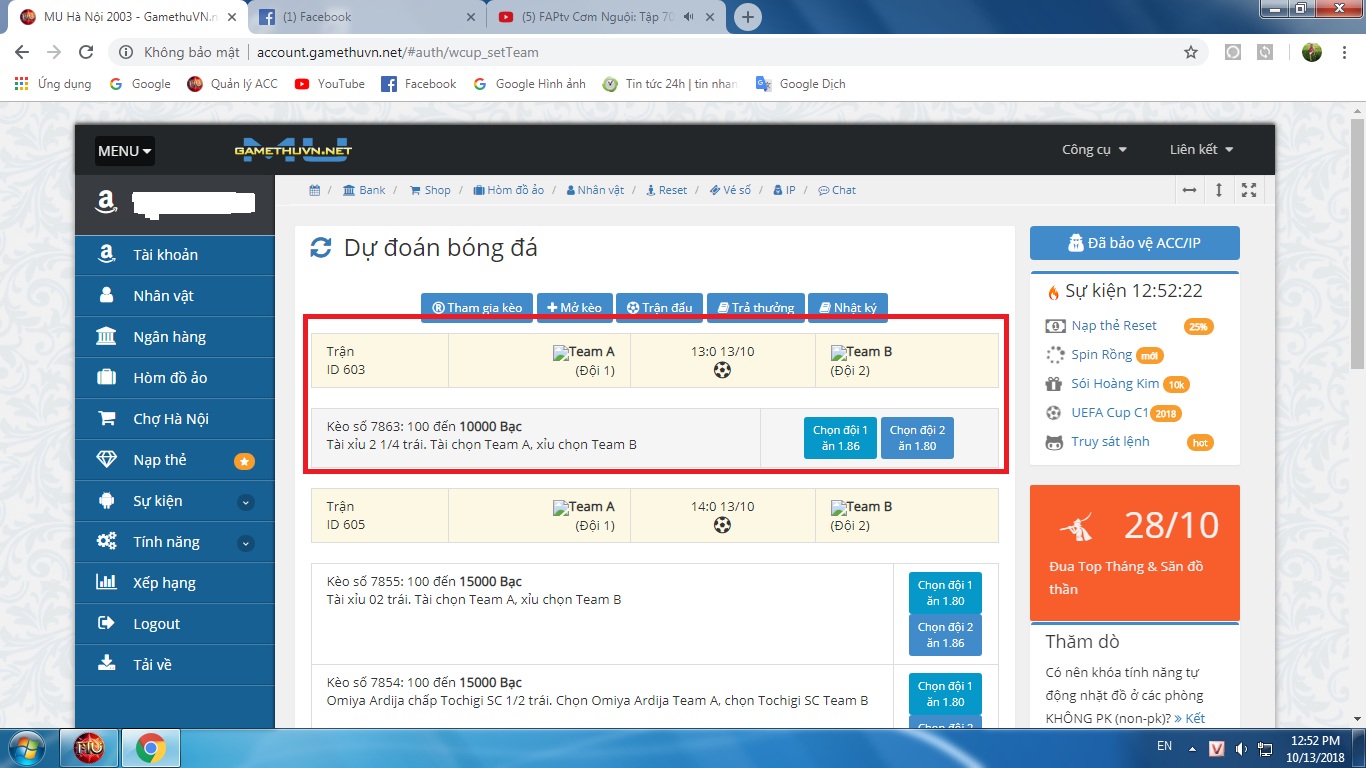 90% các bóng đã có đội nhưng ông k chịu xem. với khi đã làm team A với B thì tất cả các kèo đều phải ghi rõ đội nào vs đội nào.