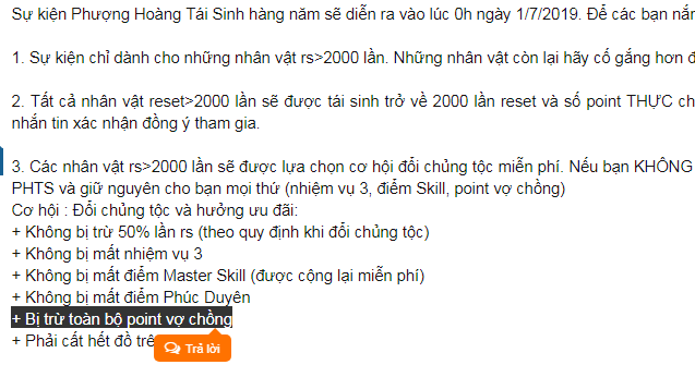 Trc có đợt chuyển tộc nữ sang nữ nam sang nam được phục hồi poin vc nhưng giờ hết rồi đợi fan già hứng tình đã